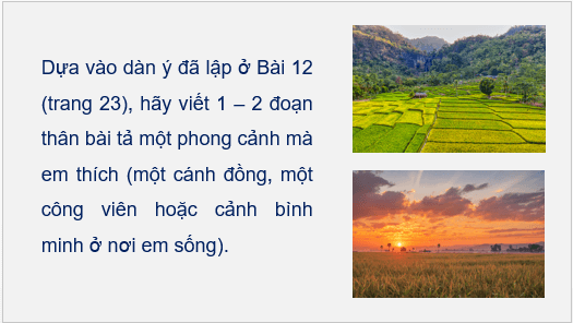 Với Giáo án điện tử Tiếng Việt lớp 5 Luyện tập tả phong cảnh (Viết thân bài) sách Cánh diều hay nhất, thiết kế hiện đại, dễ dàng chỉnh sửa giúp Giáo viên có thêm tài liệu tham khảo để soạn bài giảng powerpoint Tiếng Việt lớp 5.