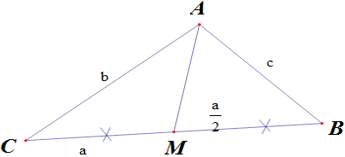 Bài toán. Cho tam giác ABC có cạnh BC=a , cạnh AC=b và cạnh AB=c . Tính độ dài đường trung tuyến AM của tam giác ABC theo a,b,c. ( Với M là trung điểm của BC ) |