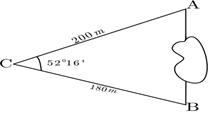 Câu 3. Khoảng cách từ A đến B không thể đo trực tiếp được vì phải qua một đầm lầy. Người ta xác định một điểm C mà từ đó có thể nhìn được A và B dưới một góc 52016' , biết CA=200m , BC=180m A. 163m B. 224m C. 112m D. 168m |