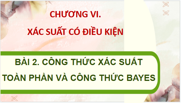 Bài giảng PPT Toán 12 Bài 2: Công thức xác suất toàn phần và công thức Bayes gồm 42 slide, với nội dung như sau: