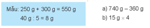 - Thực hiện được đổi đơn vị kg, g và phép tính với đơn vị gam (g).