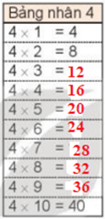 - Vận dụng được vào tính nhẩm, giải bài tập, bài toán thực tế liên quan đến bảng nhân 4.