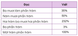 - Biểu diễn được tỉ số phần trăm dưới dạng phân số và biểu diễn phân số dưới dạng tỉ số phần trăm (trong một số trường hợp đơn giản).