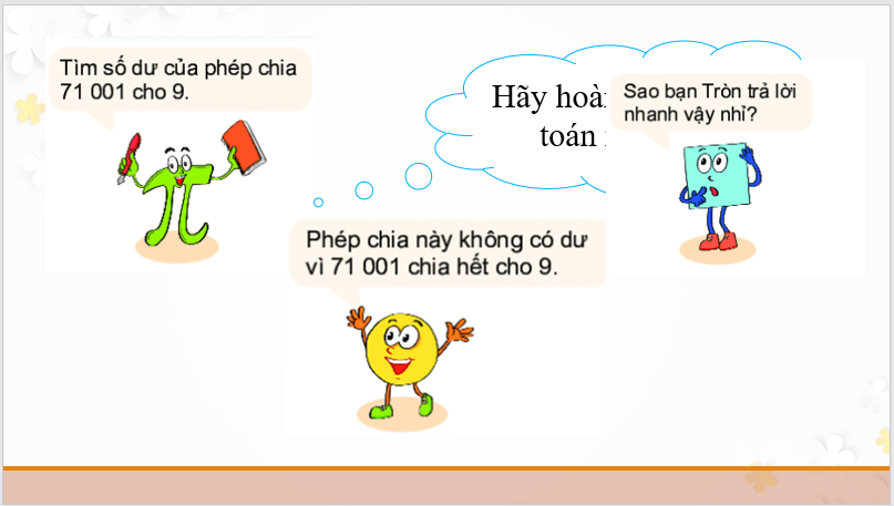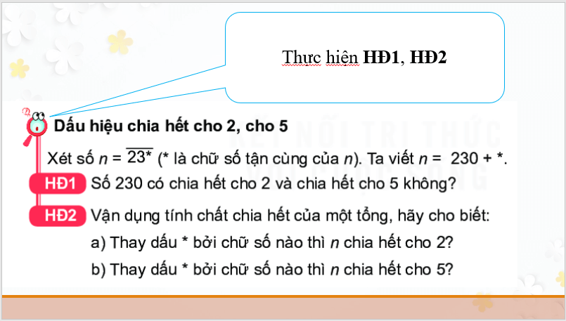 Với Giáo án điện tử Toán 6 Kết nối tri thức Bài 9: Dấu hiệu chia hết hay nhất, thiết kế hiện đại, dễ dàng chỉnh sửa giúp Giáo viên có thêm tài liệu tham khảo để soạn bài giảng powerpoint Toán 6.