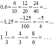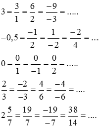 Câu 1: Điền kí hiệu ∈; ∉; ⊂ vào ô trống Câu 2: Viết các số sau dưới dạng phân số: Câu 3: Có thể viết mỗi số trên thành bao nhiêu phân số bằng nó? Câu 4: Em hãy viết 3 phân số bằng mỗi số trên. |