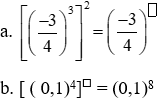 Hoạt động 3: Lũy thừa của lũy thừa (7 phút) Mục tiêu: - Hiểu quy tắc tính lũy thừa của một lũy thừa Phương pháp: Hỏi đáp, HĐ nhóm |