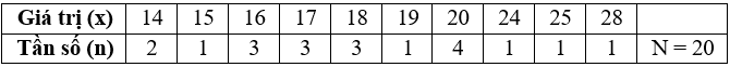 Số lượng HS nữ của từng lớp trong một trường THCS được ghi lại trong bảng dưới đây.