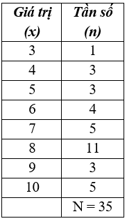 Bảng điểm kiểm tra toán của học sinh lớp 7A được cho ở bảng như sau: