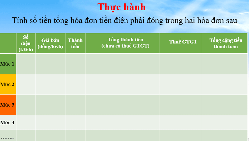 Giáo án PPT Toán 7 Bài 5: Hoạt động thực hành và trải nghiệm: Thực hành tính tiền điện gồm 6 slide, với nội dung như sau: