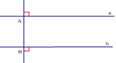 1. Quan hệ giữa tính vuông góc và tính song song. ?1. a) Dự đoán: a//b b) Đường thẳng c cắt hai đường thẳng a và b, tạo ra hai góc so le trong bằng nhau, cùng bằng 90° nên a//b * Tính chất: (SGK/96) + Nếu a⊥c và b⊥c nên a//b + Nếu a//b và a⊥c nên b⊥c * Áp dụng: Cho hình vẽ, chứng minh a//b Giải: Vì a⊥AB và b⊥AB nên a//b |
