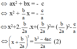 * Hãy biến đổi phương trình bậc hai đầy đủ sau: ax2 + bx + c = 0 thành phương trình có vế trái là một bình phương, còn vế phải là một hằng số.