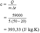 Δt = t2 - t1 (°C, K ) :độ tăng nhiệt độ; C là nhiệt dung riêng (J/kg.K)