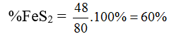 Bài 9:Đốt cháy hoàn toàn 80 gam pirit sắt trong không khí thu được chất rắn A và khí B. Lượng chất rắn A tác dụng vừa đủ với 200g H2SO4 29,4%. Độ nguyên chất của quặng là: