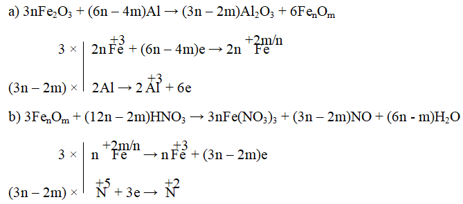 b) FenOm + HNO3 → Fe(NO3)3 + NO + H2O