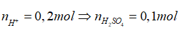 nH+ còn lại = nH+ ban đầu- nH+ pứ= 2.nH2SO4- 2.nH2= 2. 0,03- 2.0,02= 0,02 mol