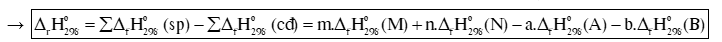 Biến thiên enthalpy chuẩn của phản ứng, tính theo nhiệt tạo thành :