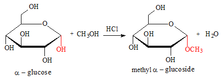 (d) Cho glucose phản ứng với methanol có mặt HCl khan.