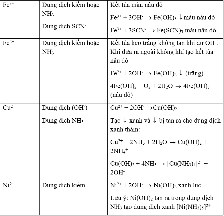 - Lý thuyết Nhận biết một số cation trong dung dịch