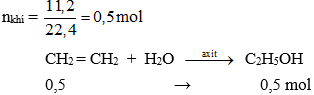 Câu 8: Cho 11,2 lít khí etilen (ở đktc) tác dụng với nước có axit sunfuric đặc làm xúc tác, thu được 9,2 gam ethylic alcohol. Hiệu suất phản ứng là