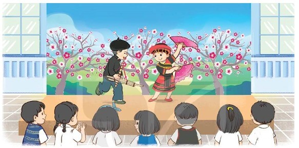 Hoạt động 1, trang 51 Hoạt động trải nghiệm lớp 2. Hát và vận động theo nhạc một bài hát về chủ đề “Ngày Tết”.