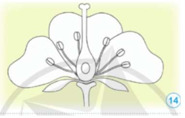 Thực hành, thí nghiệm trang 42 SGK Khoa học lớp 5: Vẽ sơ đồ bông hoa như hình 14 và ghi chú tên các bộ phận của hoa.