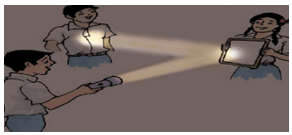 - Bạn A cầm đèn pin chiếu vào gương phẳng mà bạn B đang cầm ta thu được 1 vệt sáng trên người bạn C.