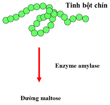 Enzyme amylase giúp biến đổi một phần tinh bột chín thành đường maltose