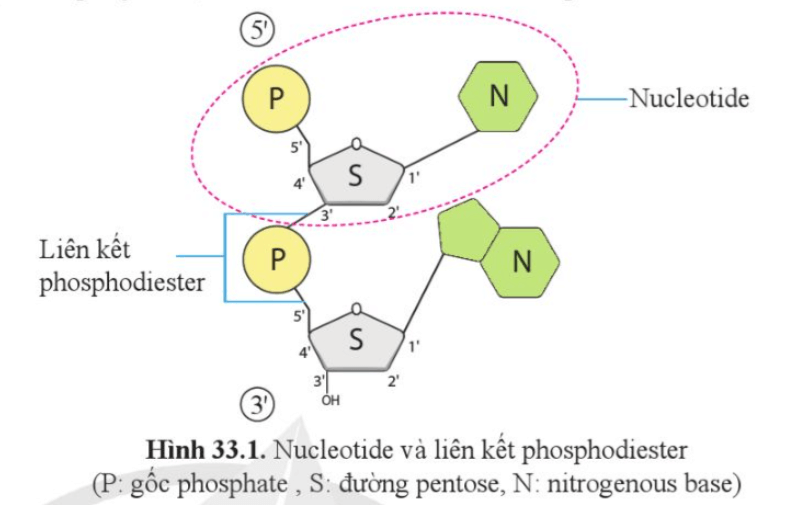 Câu hỏi 2 trang 160 KHTN 9: Quan sát hình 33.1, cho biết một nucleotide gồm những thành phần nào.