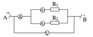 Câu 2: Đặt một hiệu điện thế UAB vào hai đầu đoạn mạch gồm hai điện trở R1 và R2 mắc song song. Hiệu điện thế giữa hai đầu mỗi điện trở tương ứng là U1, U2. Hệ thức nào sau đây là đúng?