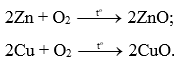 Viết phương trình hoá học của phản ứng giữa kẽm (zinc), đồng với khí oxygen