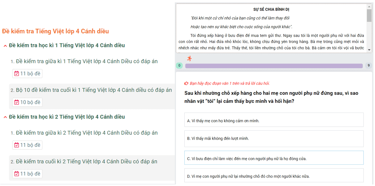 – Mỗi bài học trong sách Cánh diều đều có bài trắc nghiệm đi kèm, giúp học sinh ôn luyện ngay sau khi học.