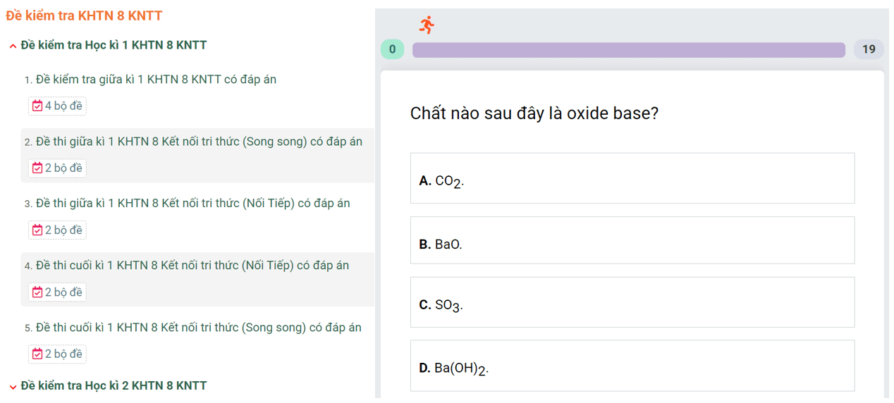 Học online Khoa học tự nhiên 8 tại VietJack là giải pháp học tập hiện đại, hiệu quả dành cho học sinh lớp 8. Với hệ thống ôn luyện bài bản theo từng bài học SGK, kết hợp video bài giảng sinh động và các đề kiểm tra chất lượng, học sinh có thể dễ dàng củng cố kiến thức, rèn luyện kĩ năng và nâng cao điểm số môn Khoa học tự nhiên 8.