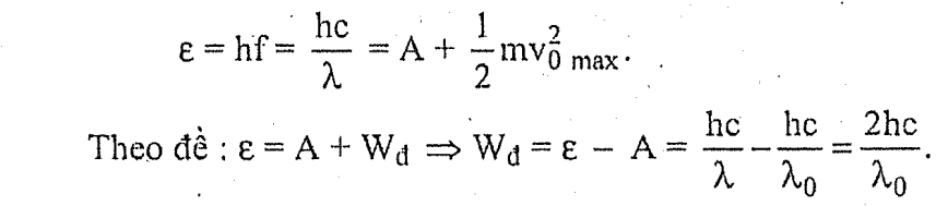 Câu 38: Chiếu ánh sáng đơn sắc có bước sóng 0,3 μm vào một chất thì thấy có hiện tượng phát quang. Cho biết công suất của chùm sáng phát quang chỉ bằng 0,5% công suất của chùm sáng kích thích và cứ 300 phôtôn ánh sáng kích thích cho 2 phôtôn ánh sáng phát quang. Bước sóng ánh sáng phát quang là