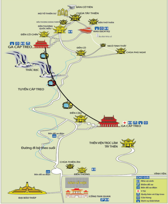 Để lên khu di tích danh thắng Tây Thiên cổ tự, các bạn có thể đi bộ hoặc sử dụng dịch vụ tại đây. Tùy theo sức khỏe và sở thích của bản thân mình để lựa chọn các phương án đi bộ hoặc kết hợp xe điện và cáp treo.