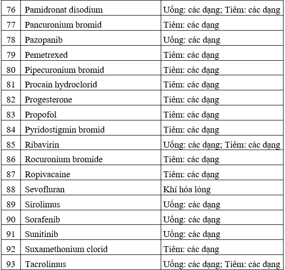 * Danh mục này bao gồm cả các muối của các chất ghi trong Bảng này, khi các muối đó có thể hình thành và tồn tại.