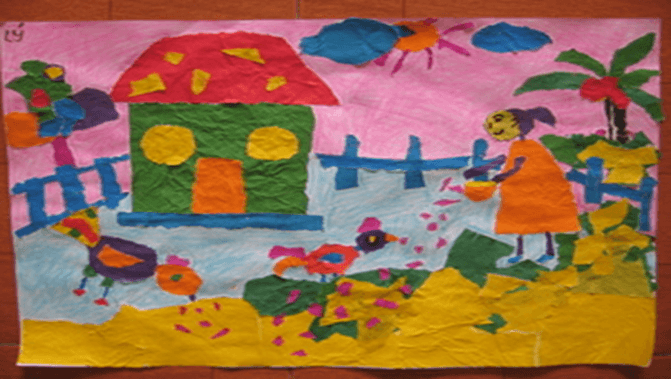+ Hình ảnh chính là các hình ảnh em nhỏ vui chơi và những hoạt động thường ngày được xếp chính giữa bức tranh,