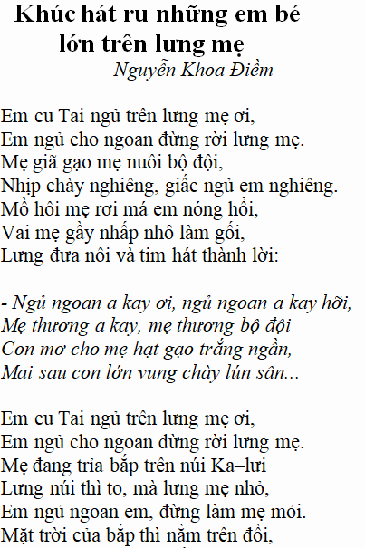 Bài thơ Khúc hát ru những em bé lớn trên lưng mẹ - Tác giả tác phẩm (mới 2024)