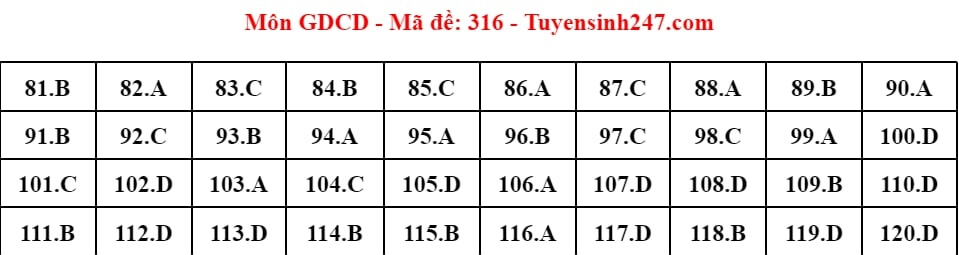 - Đáp án Đề thi GDCD 2024: Mã đề 316