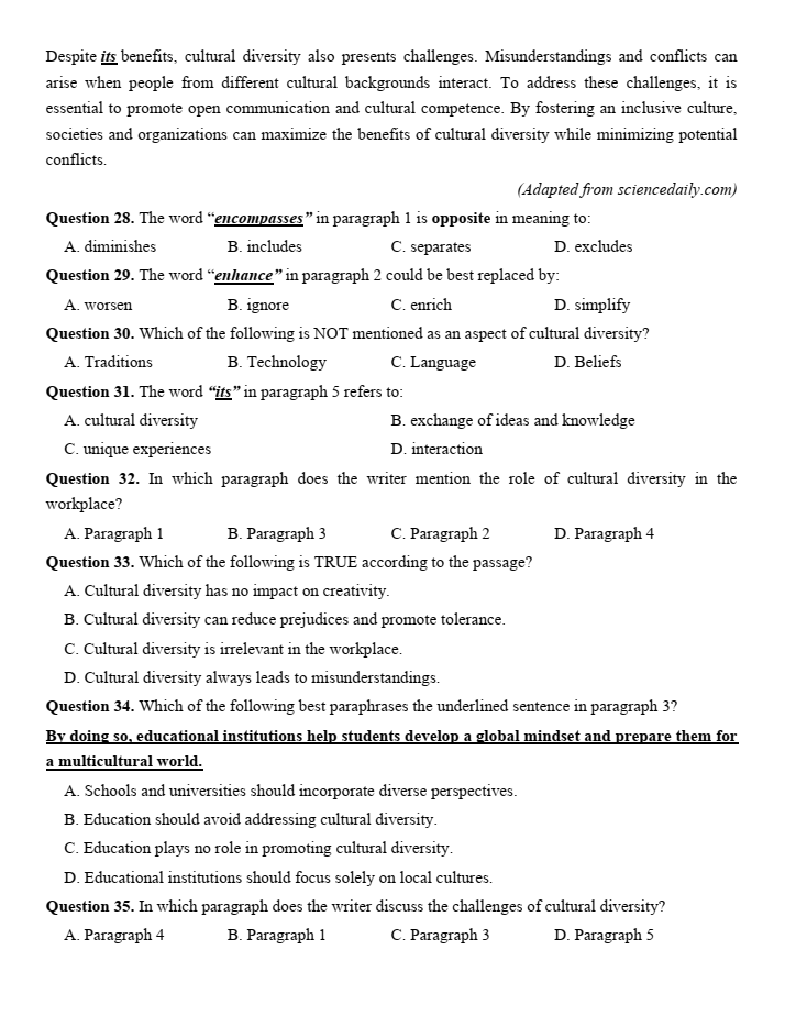 Xem thêm đề thi thử Tiếng Anh năm 2025 tốt nghiệp THPT trên cả nước khác: