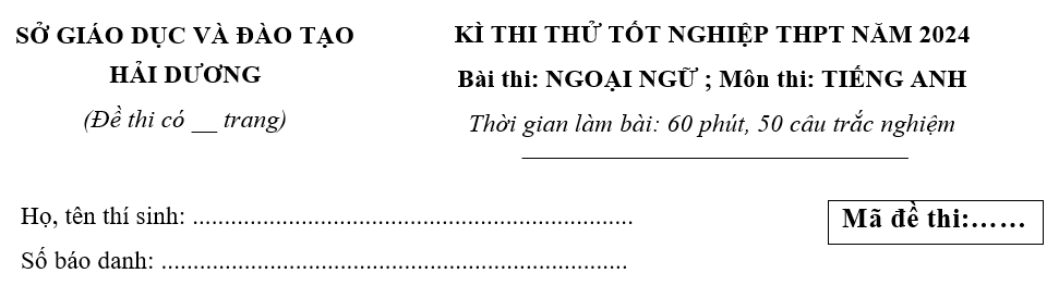 Đề thi thử Tốt nghiệp Tiếng Anh 2025 Cụm Liên trường THPT Hải Dương