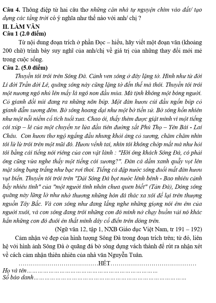 Đề thi thử Văn 2023 trường Chuyên Lam Sơn, Thanh Hóa