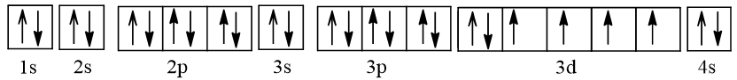 - Cấu hình electron của nguyên tử iron (Z = 26) theo ô orbital là: