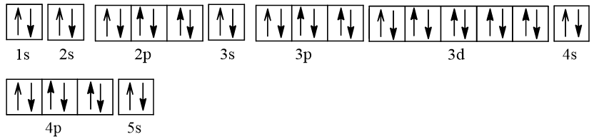 - Do có sự chèn mức năng lượng, theo trật tự phân mức năng lượng các electron được phân bố như sau: 1s22s22p63s23p64s23d104p65s2.