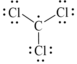 Từ công thức electron của CCl3, thay mỗi cặp electron dùng chung bằng một gạch nối. Ta được công thức Lewis của CCl3 là: