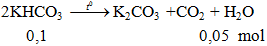 Nhiệt phân hoàn toàn 10 gam KHCO3 đến khi phản ứng xảy ra hoàn toàn, sau phản ứng thu được chất rắn có khối lượng giảm so với ban đầu là
