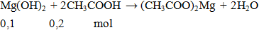 Cần bao nhiêu ml CH3COOH 0,2M để hòa tan hoàn toàn 5,8 gam Mg(OH)2?