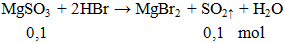 Thể tích khí ở dktc thoát ra khi cho 10,4g MgSO3 phản ứng hoàn toàn với lượng dư HBr là