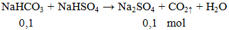 Thể tích khí ở dktc thoát ra khi cho 8,4g NaHCO3 phản ứng hoàn toàn với lượng dư NaHSO4 là