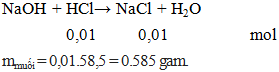 Cho 100ml HCl 0,1M phản ứng vừa đủ với dung dịch NaOH thu được dung dịch X. Khối lượng muối tan có trong dung dịch X là