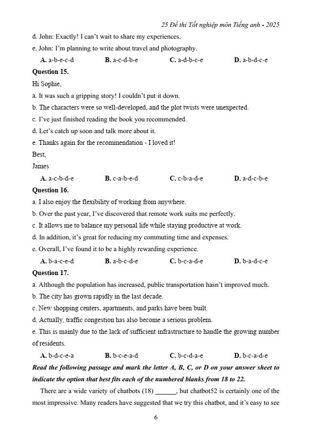 - Đề thi Tốt nghiệp THPT môn Tiếng Anh số 6